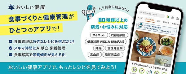 おいしい健康は、健康な方やダイエット、健康診断で気になる値があるといった「予防のための食事」から、患者や妊婦・高齢者など「医療上の制限がある方の食事」まで、エビデンス*に基づく食事管理を、毎日の家庭でおいしく手軽に実践できるよう、サポートする献立・栄養管理支援サービスです。